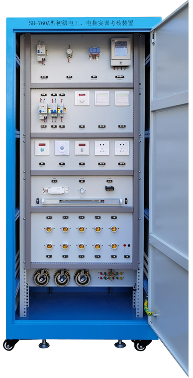 柜式電工電拖實訓設備,電工電器實訓考核柜,電工電拖實訓考核裝置是按照勞動社會保障部頒發的工人技術等級標準和職業技能實驗內容要求教學而設計,電工實訓考核柜以標準的電氣控制柜為主,利用柜體的雙面空間,布置電器及配套實驗器材,能完成電工考核鑒定中的電工電器控制與照明電路的實操項目,堅持理論與實際的原則,突出技能訓練,提高了實習教學質量,讓學員很快掌握實際操作技能知識與實踐接線技巧,使培訓教學走向一個新領域。